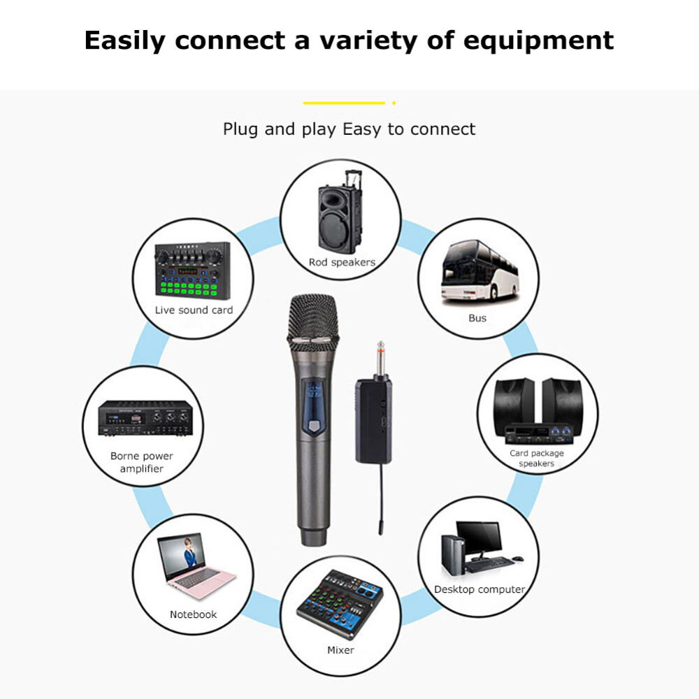 The wireless microphone system is easy to use. Plug and play, it will automatically pair. No need for other operations.
