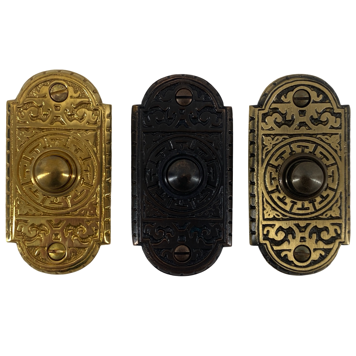 This Victorian style push button electric doorbell comes quality crafted from solid cast brass and features an ornate garden inspired design.