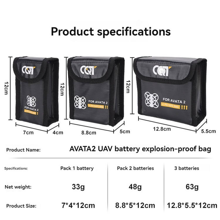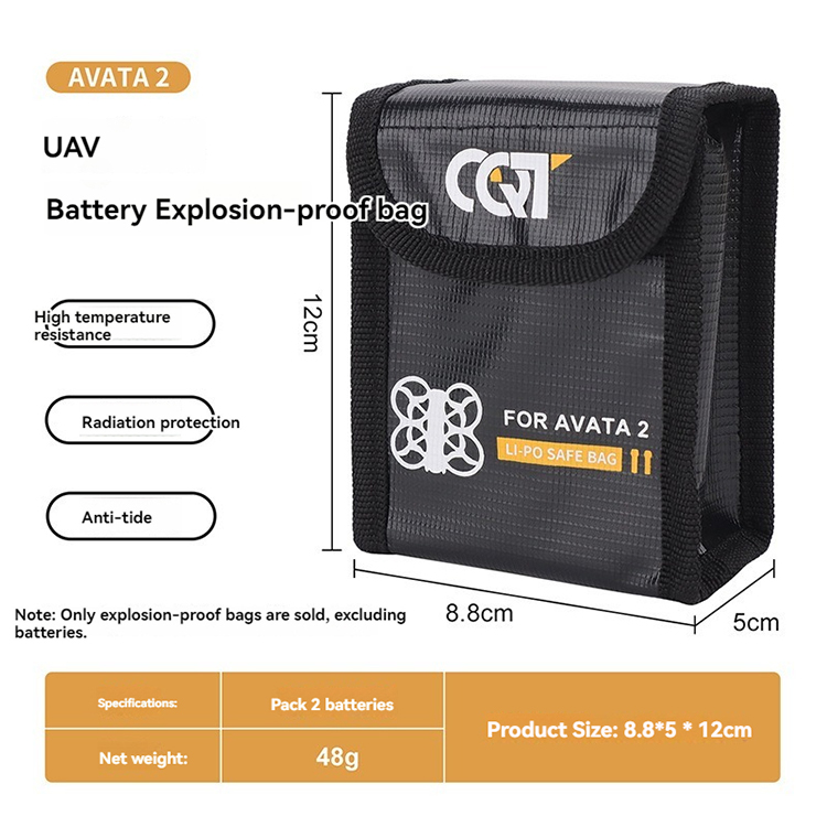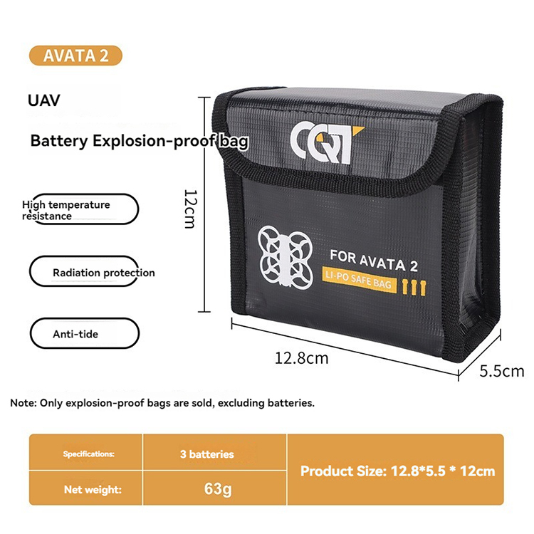 l AVATA2 battery explosion-proof bag uses fire and explosion-proof radiation-proof material, high temperature resistance and moisture-proof, but also effective waterproof effective protection of the battery, carry a safe trip
