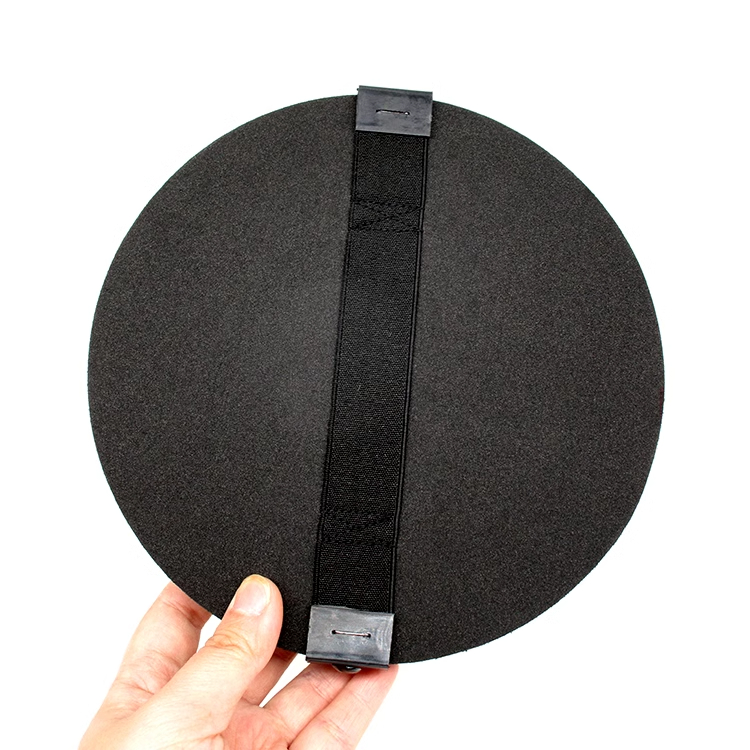 l With the sandpaper securely fastened to the round hand pad, you can then hand sand or polish flat surfaces and contours