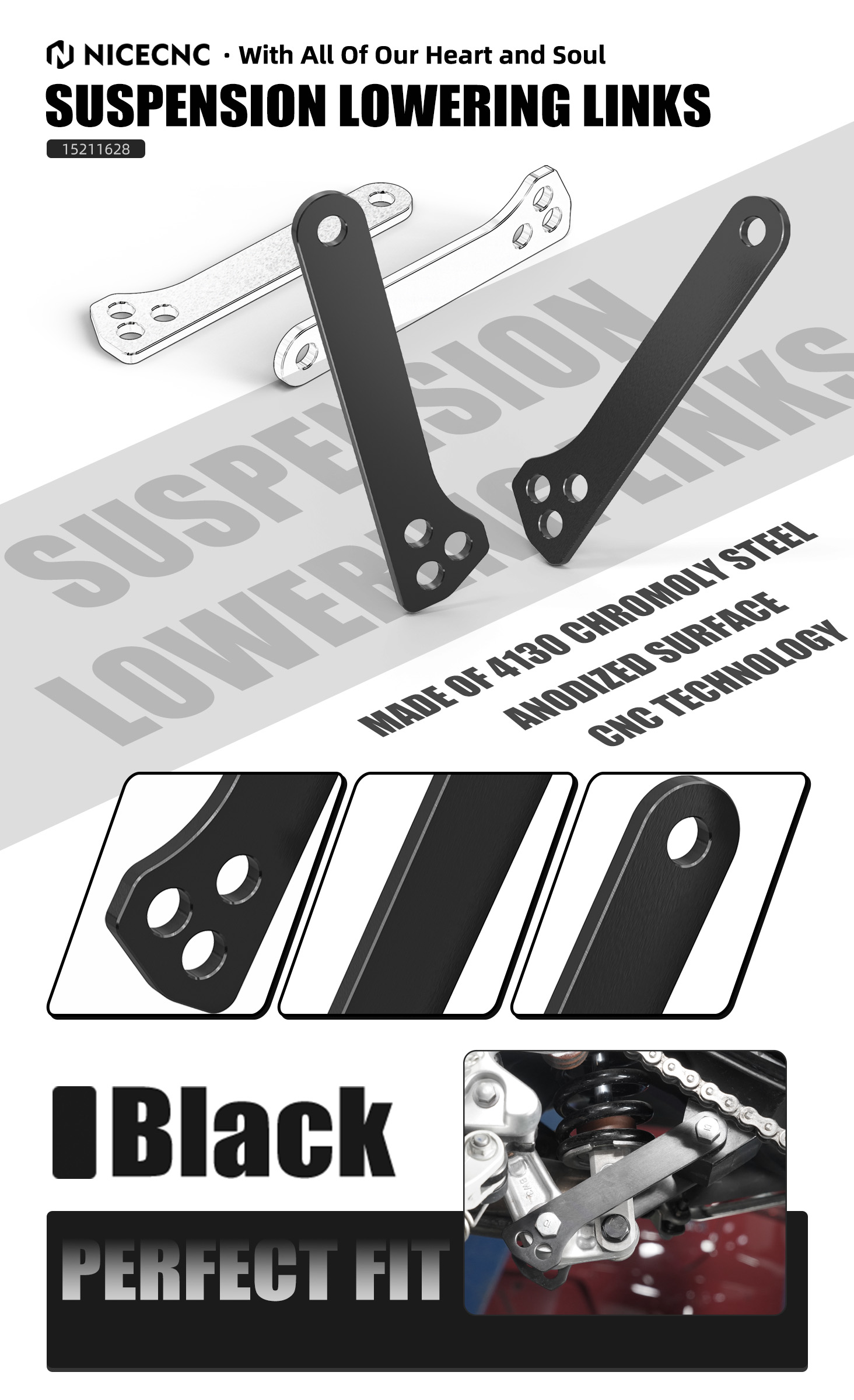 【Customize Your Suspension】Suspension Links provide the flexibility to adjust your seat height by 12 mm (0.5 in) or lower it by either 18 mm (0.7 in) or 30 mm (1.18 in).