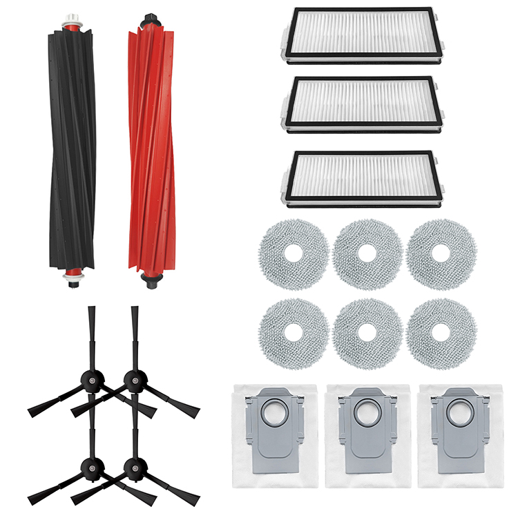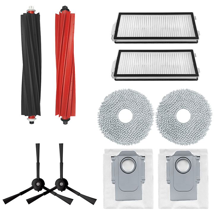 l Types (Optional): Set of main brushes, 4 side brushes, 20 side brushes, 3 Strainers, 10 Strainers, 6 pieces of rag, 12 pieces of cloth, 3 dust bags, 10 dust bags, 1 set of main brush + 2 side brushes + 2 filters + 2 cloths + 2 dust bags, 1 set of main brush + 4 side brushes + 3 filters + 6 rags + 3 dust bags