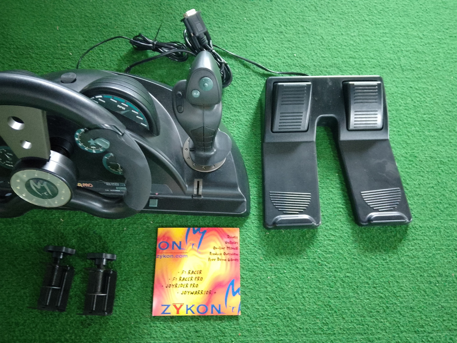 Lenkrad und Pedale für Computer ZYKON JOYRIDER-PRO OVP sehr guter Zustand mit Kabeln! Dieses Gerät stammt aus unserer Sammlung historischer Geräte und ist in neuwertigem Zustand. Neupreis war € 199,00