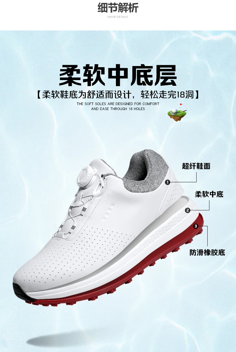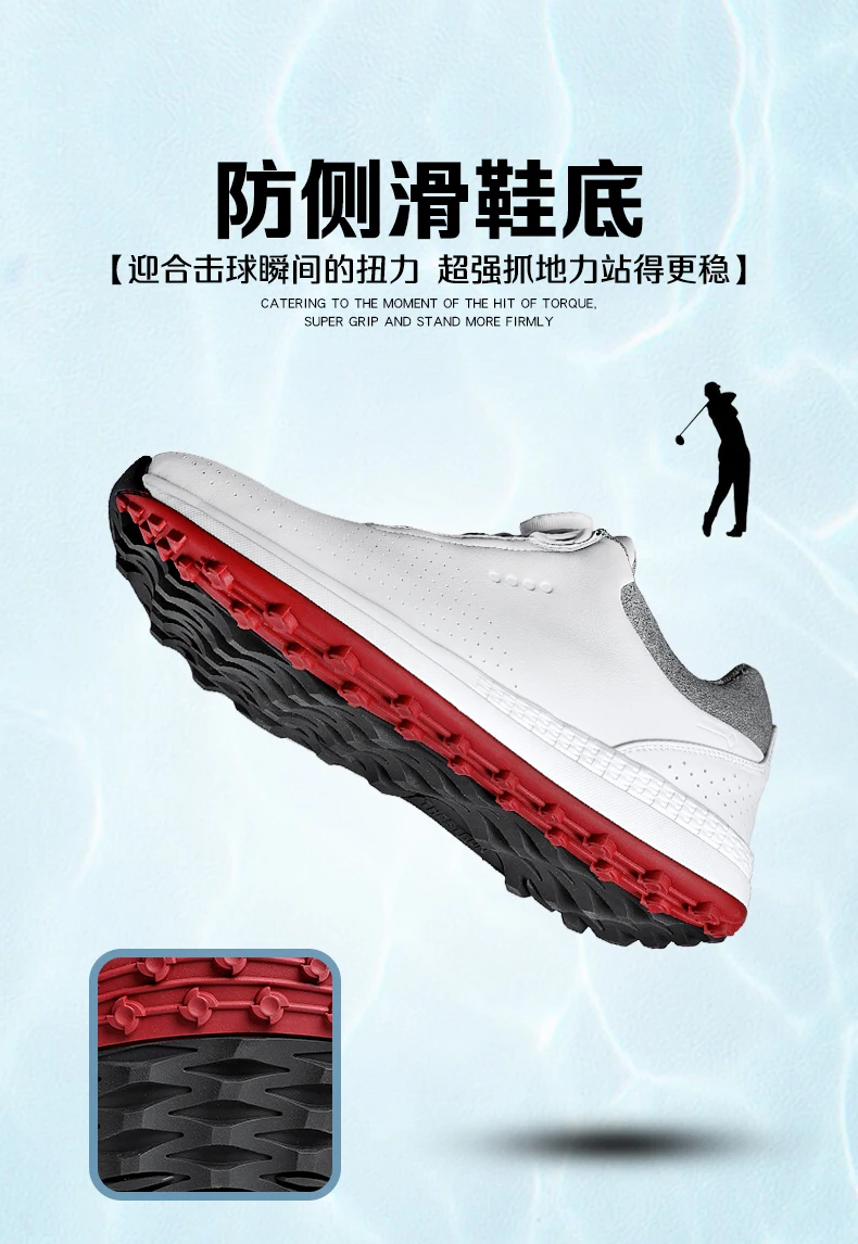 Waterproofing: Playing golf often requires being in outdoor environments with unpredictable weather conditions. Golf shoes, particularly those made with waterproof materials or waterproofing technology, help keep golfers' feet dry and comfortable even in wet or rainy conditions. This advantage ensures that players can concentrate on their game without worrying about wet feet or slippery conditions affecting their performance.