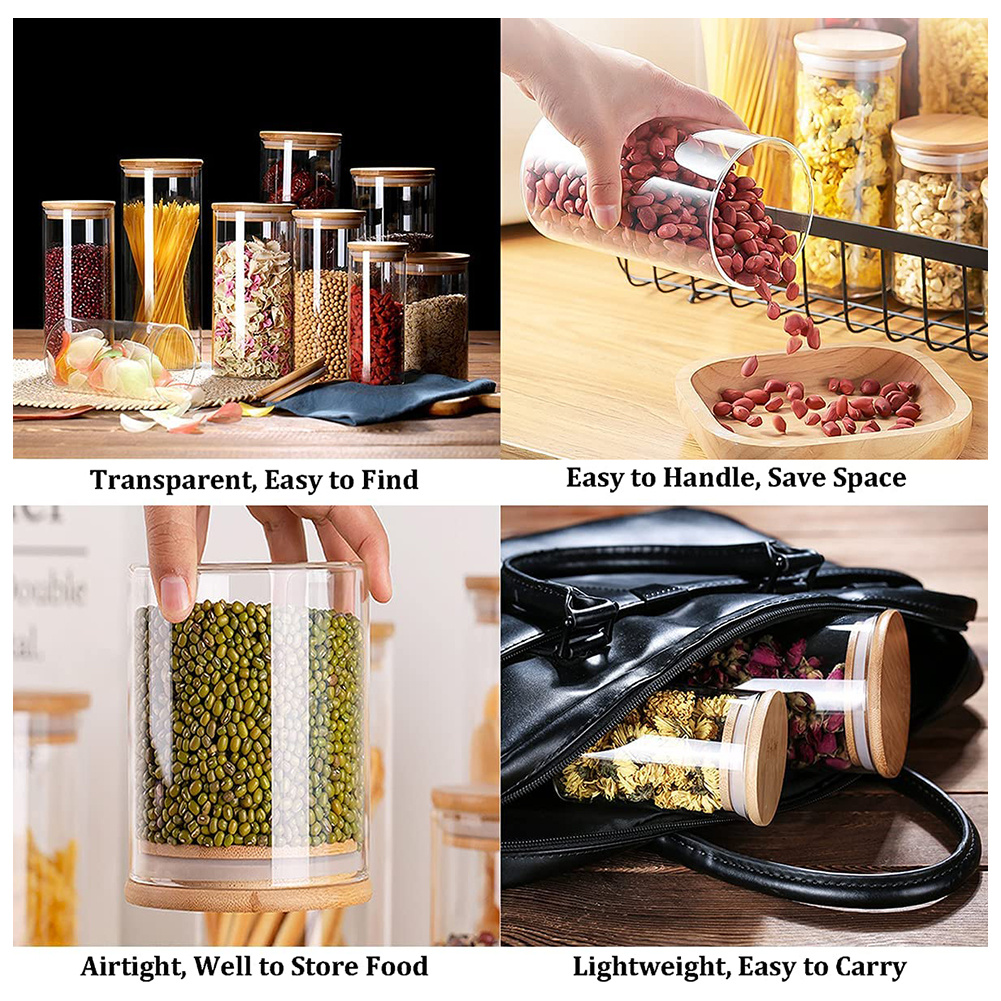 Extensive Use - With bamboo lids are not only suitable for storing dry food such as beans, salt, sugar, spices, seasonings in the kitchen, but also small items such as cotton balls, cotton pads, hair bands in the bathroom or dressing table.
