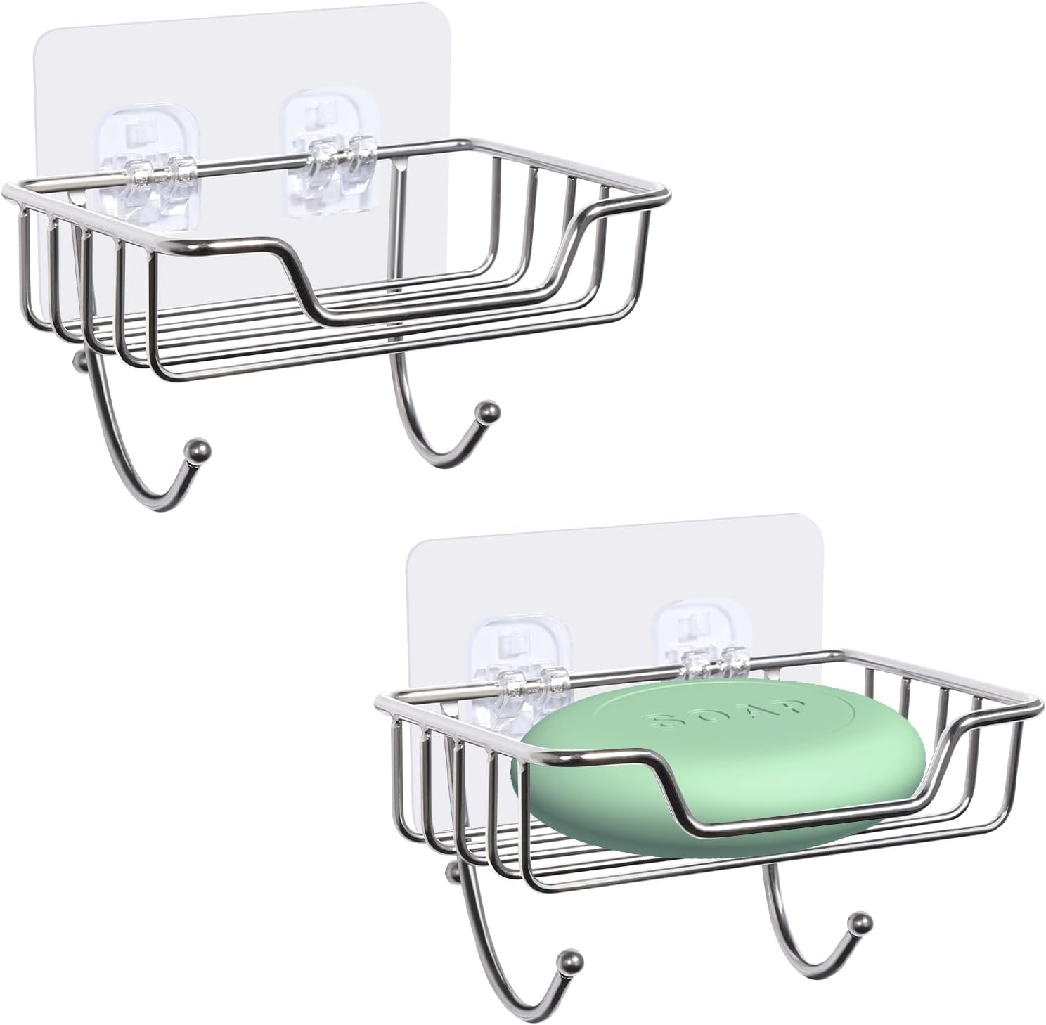 Our soap organizer has two dishes. The front dish is removable, so you can take it out and wash it easily. With 7 extra high convex bars on the bottom, soap will not soak in water, and dry quickly.