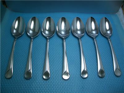 J.A.HENCKLES "PROVENCE" SET OF 7 SOUP OVAL PLACE SPOONS. ALL 7 SPOONS ARE IN EXCELLENT BARELY USED CONDITION. THEY MEASURE: 7 3/8" LONG.