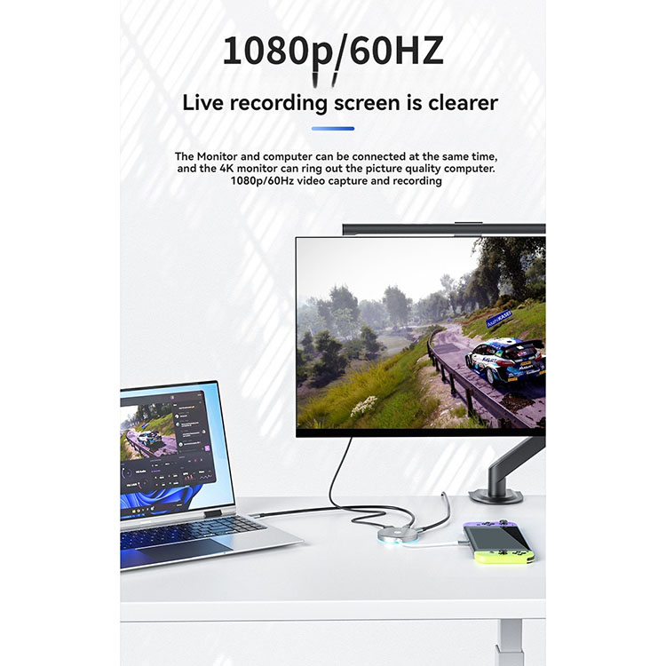 l Can be connected to the monitor and computer at the same time, monitor 4k ring out the quality of the computer, 1080p/60HZ video capture recording