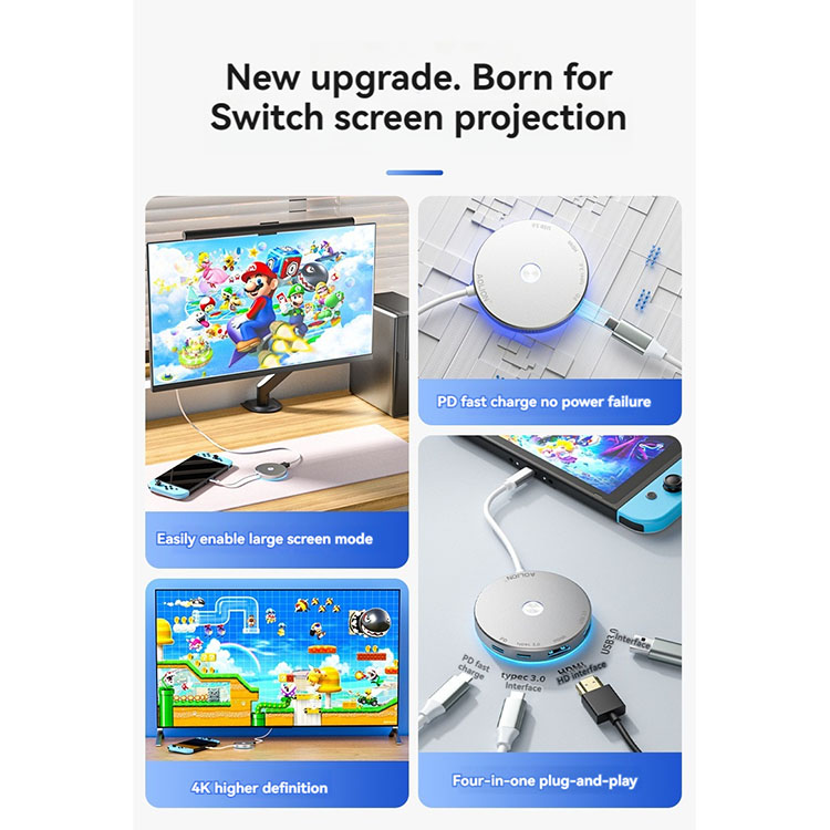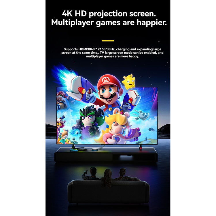 l Support HDMI3840*2160/30Hz, charging and expanding the large screen at the same time, you can open the TV large screen mode, multi-player games more happy