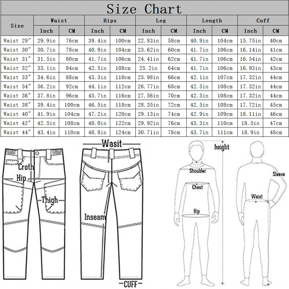 pockets, 2 thigh pockets, shins pockets, and have drawstring on the leg