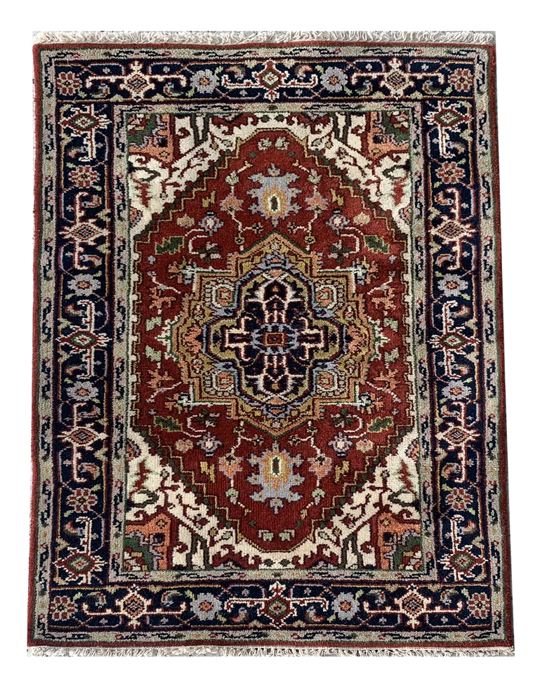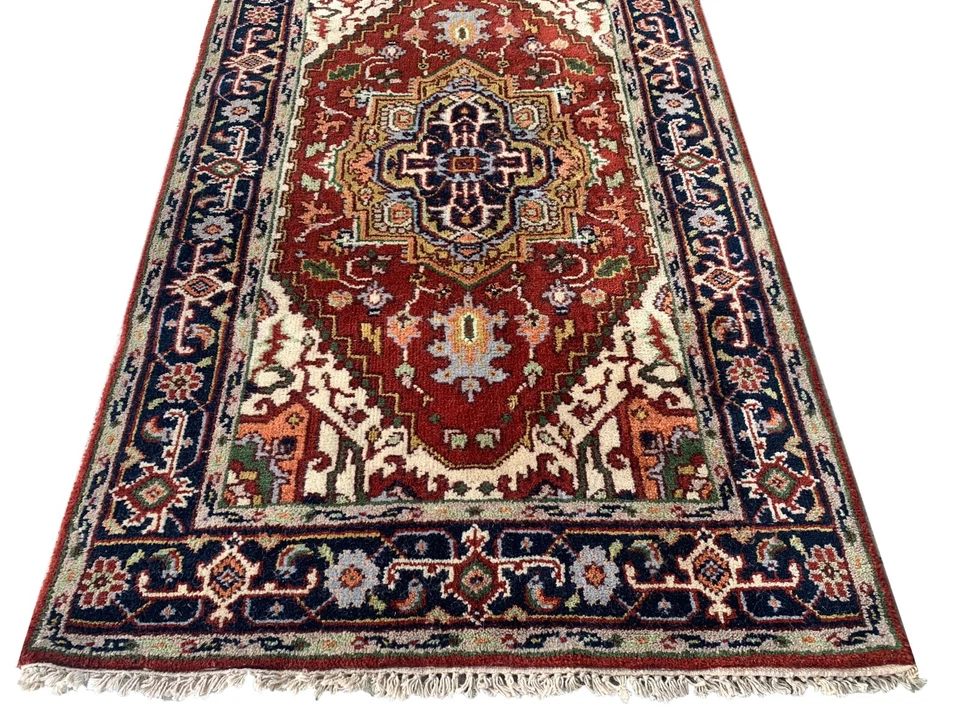3X5 Rust Heriz Hand-Knotted Wool Area Rug