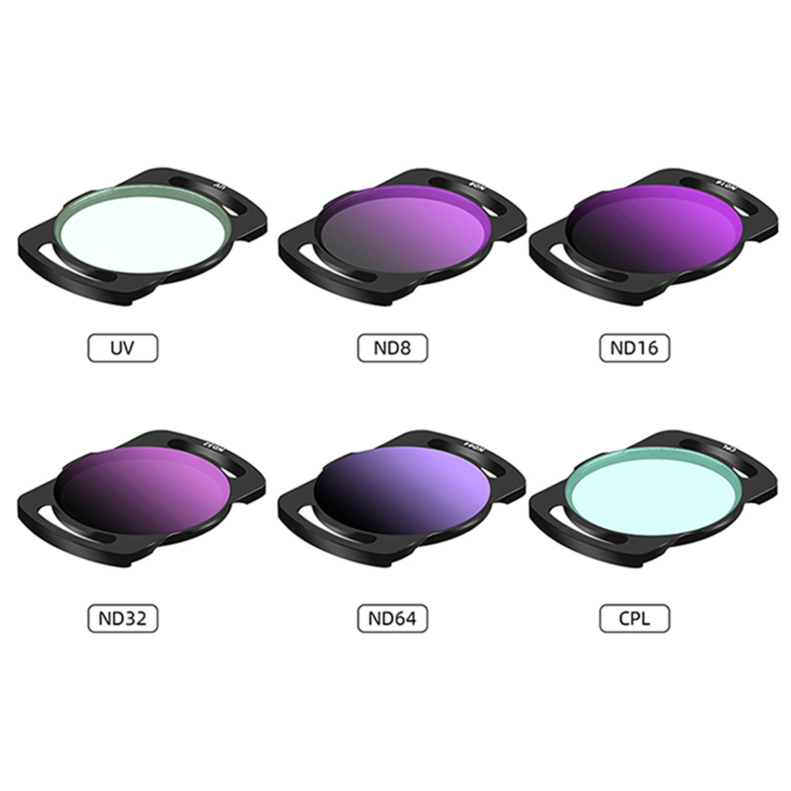 l Types (Optional): UV, CPL, ND8, ND16, ND32, ND64, UV+CPL+ND16 3-piece Set, ND8/16/32/64 4-piece Set, CPL+UV+ND8/16/32/64 6-piece Set