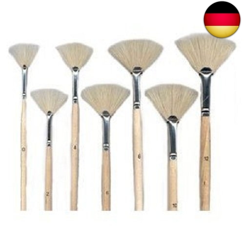 7 Fächerpinsel aus reinen Schweineborsten. Der Stiel ist aus Naturholz und selbst-verständlich lackiert. Ein tolles Sortiment mit dem Sie Ihr Pinselsortiment garantiert gut ergänzen können. Beim arbeiten mit Künstlerfarben bitte den Pinsel sofort gründlichst auswaschen, und auch Pigmentreste am Zwingenrad umgehend entfernen. Die Farben trocknen sehr schnell und können den Pinsel unbrauchbar machen. Die richtige Pflege kann wichtig für eine lange Lebensdauer der Pinsel sein.7 Fächerpinsel