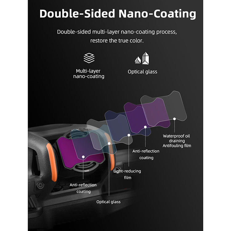 l Multi-layer nano-coating process, giving the lens high-quality waterproof, oil-proof, dirt-proof, scratch-proof performance