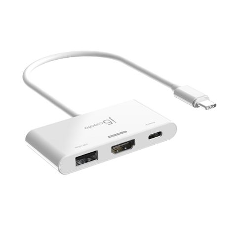 The JCA399 j5create adapter in white adds extra functionality to your laptop, tablet, or smartphone. The adapter’s small size makes it easy to transport and place on a desk while saving space. This adapter allows you to connect a display such as a monitor or TV to your device and supports resolutions up to 4K 144 Hz. Includes a 5Gbps USB Type-A port and a USB-C Power Delivery port that can be used to charge your laptop when a USB-C power adapter is connected. The 4K144 HDMI port supports Extended, and Mirrored display modes. It comes with a 5Gbps USB Type-A that allows you to connect USB peripherals such as a USB flash drive, keyboard, or mouse. The USB-C port supports upstream charging and Power Delivery 3.0 100W to keep your connected mobile device powered up while in use. Ports included: 1 - HDMI 4K port, 1 - USB type A port, 1 - USB-C port