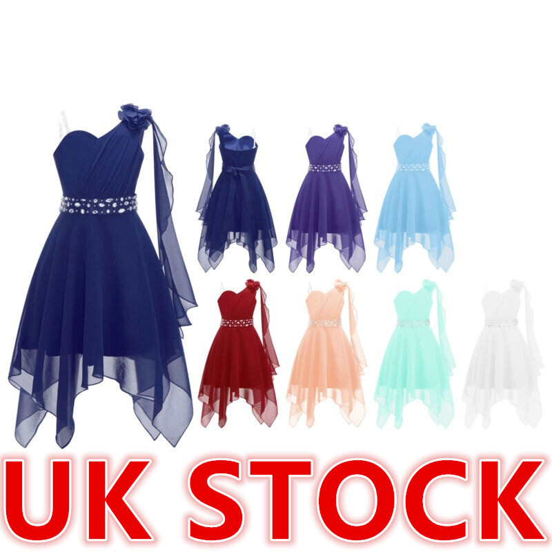 Kids Girl One-Shoulder Flower Dress Chiffon Prom Ball Party Pageant Gowns Outfit
