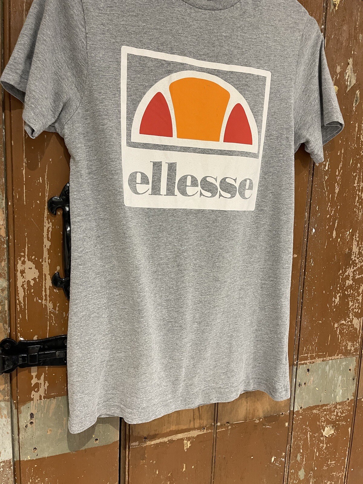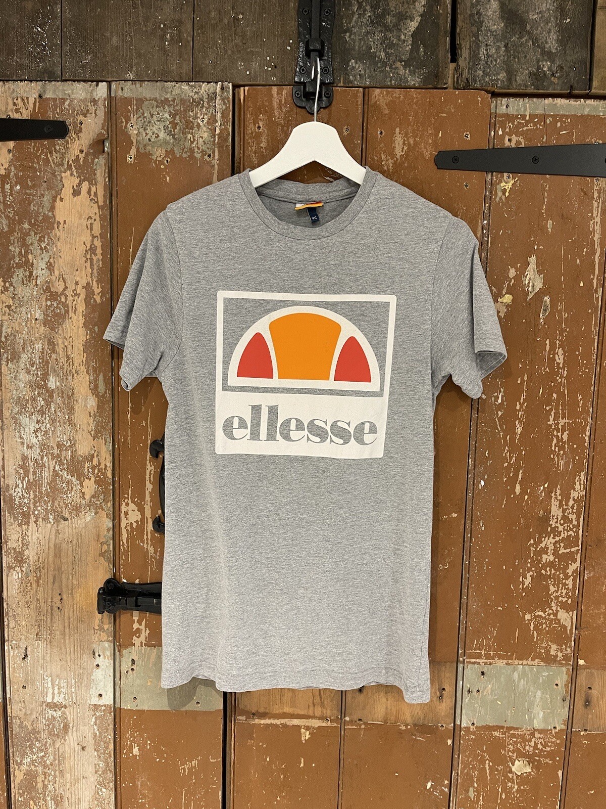 Ellesse T-Shirt Top Short Sleeve Crew Neck Grey Cotton Logo XS