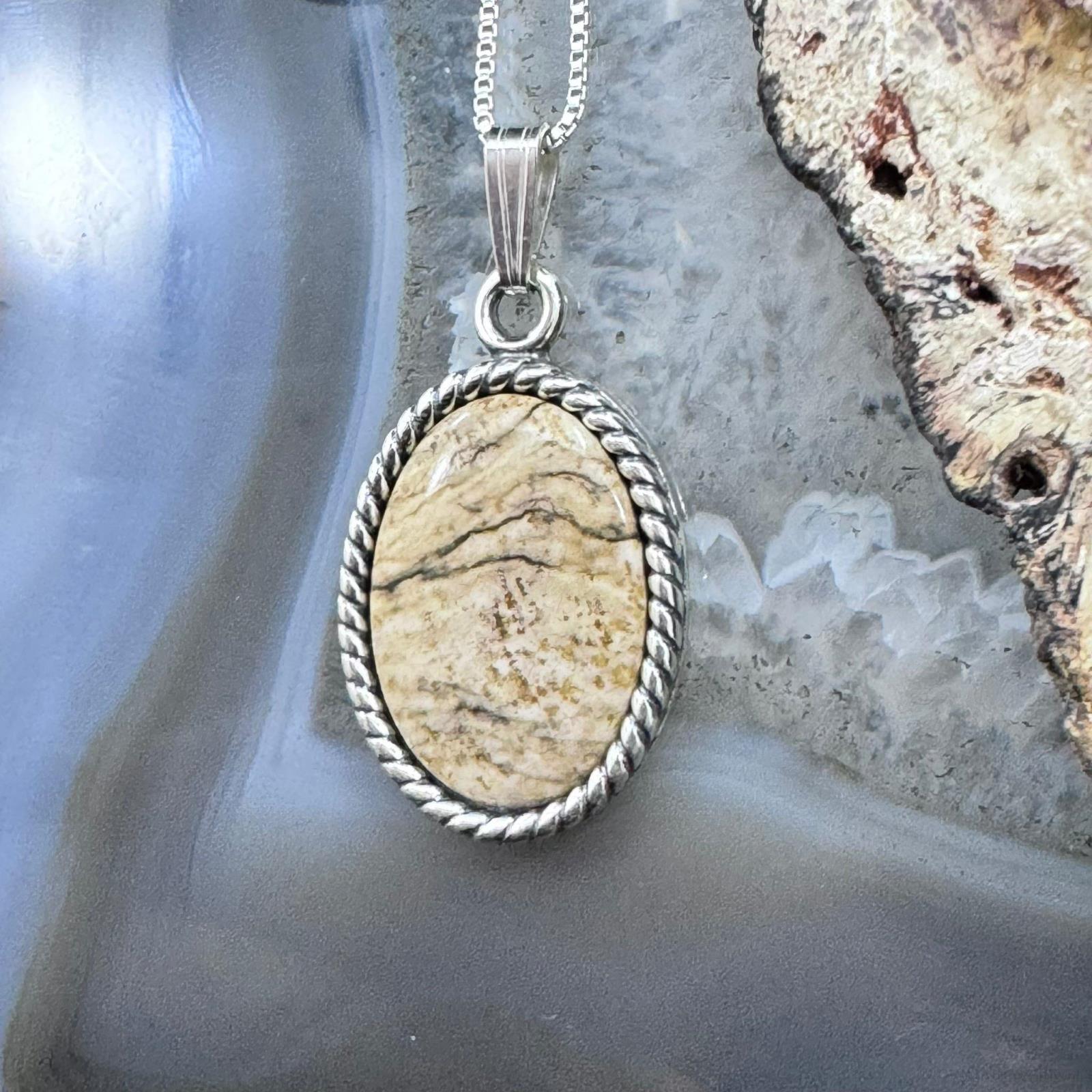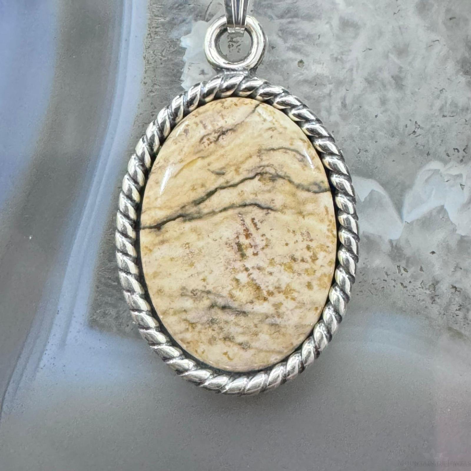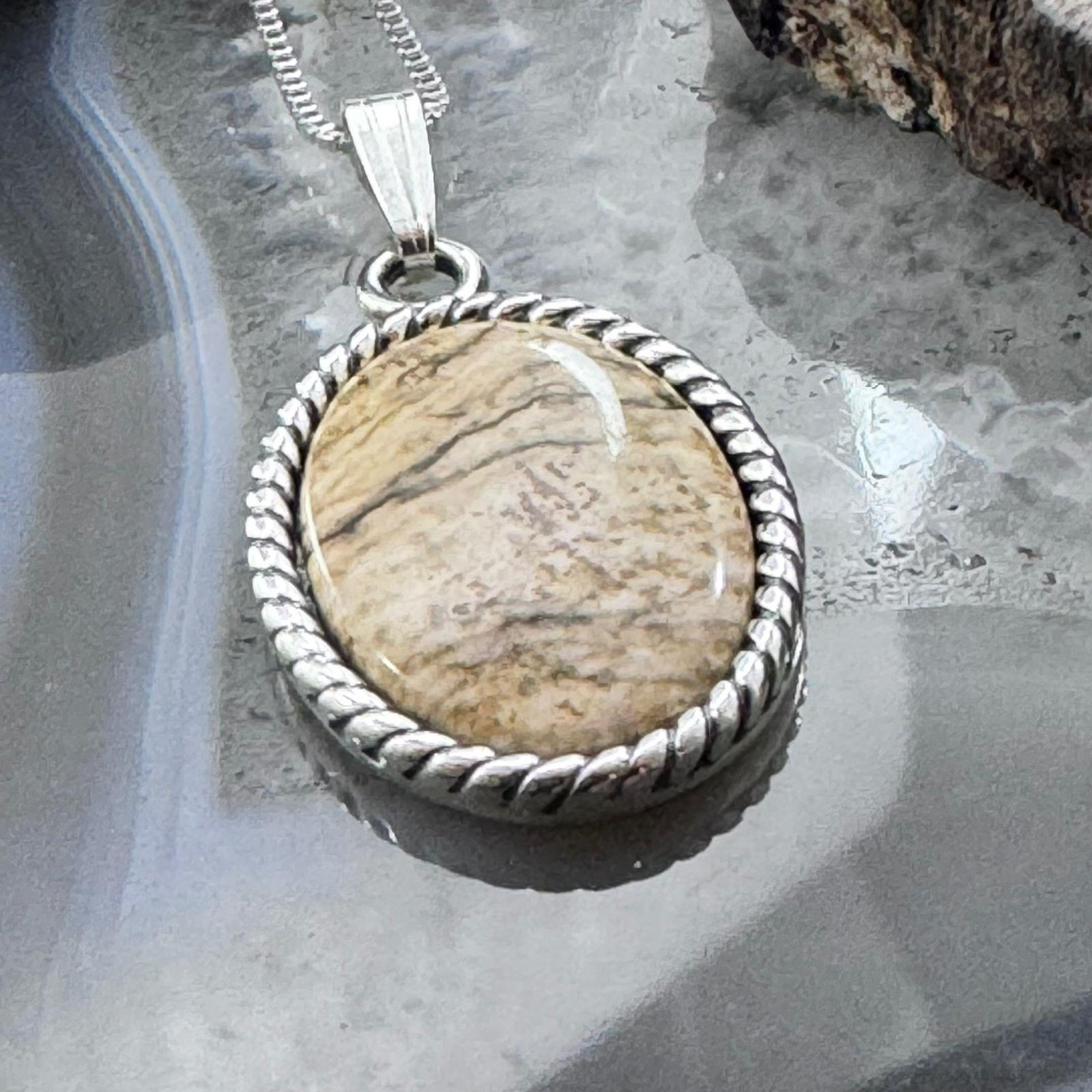 Carolyn Pollack Sterling Silver Oval Picture Jasper Cabochon Decorated Unisex Pendant With Necklace.