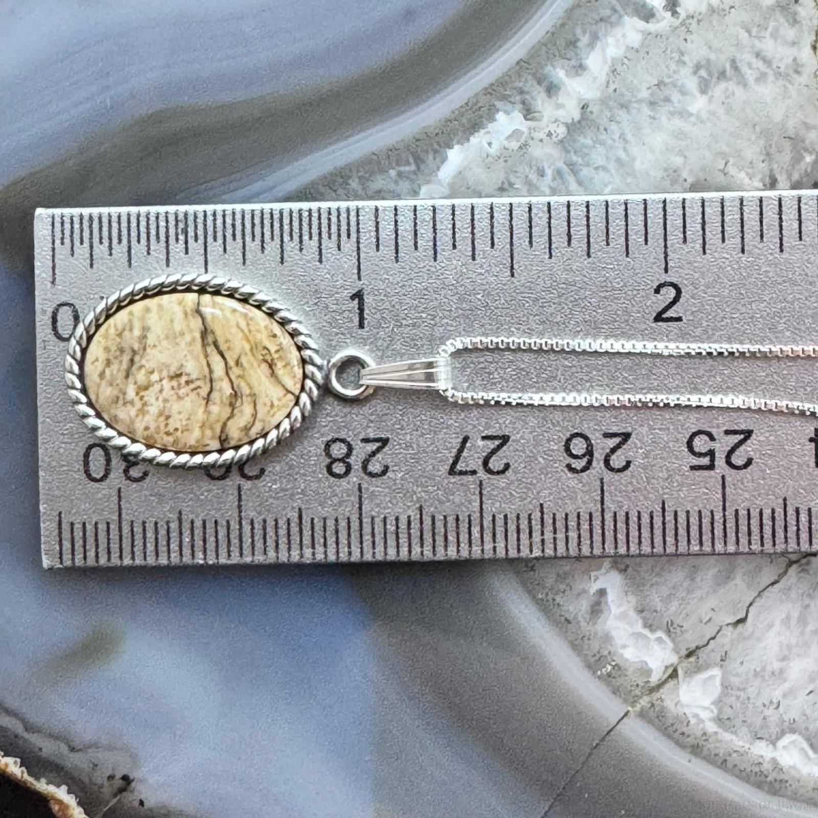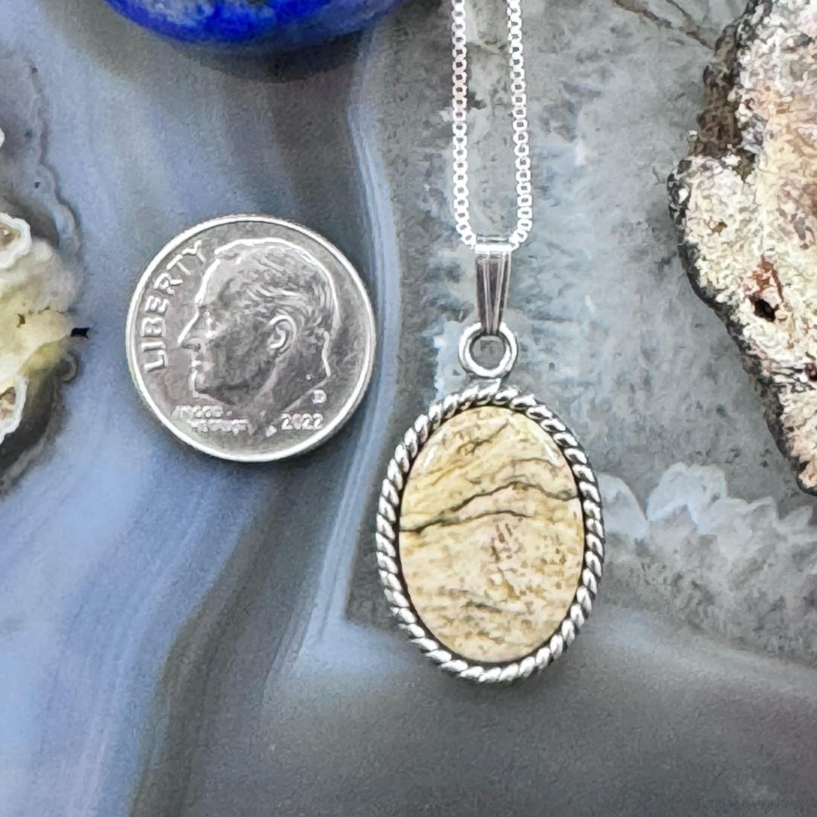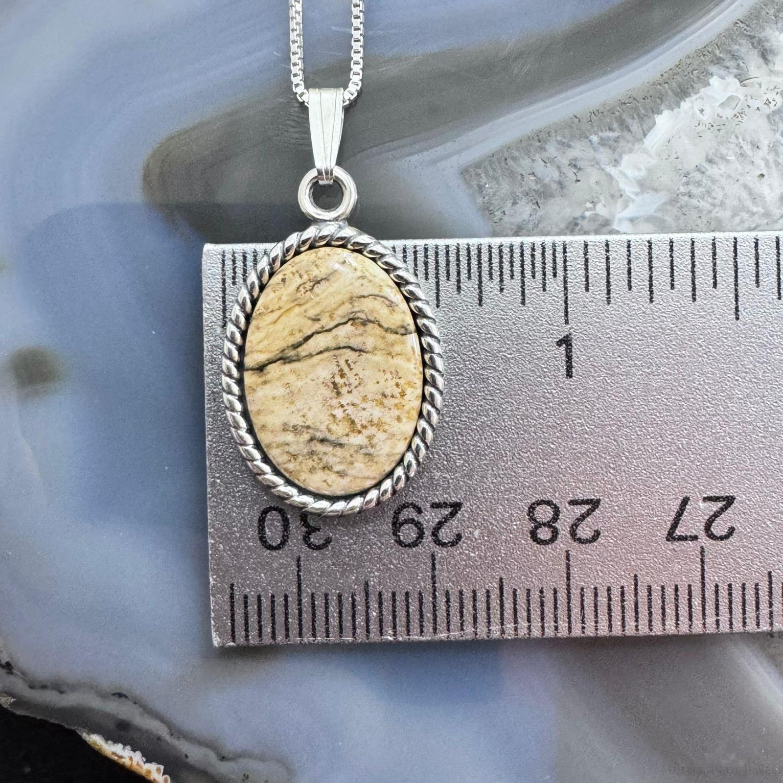 Carolyn Pollack Sterling Silver Oval Picture Jasper Cabochon Decorated Unisex Pendant With Necklace.