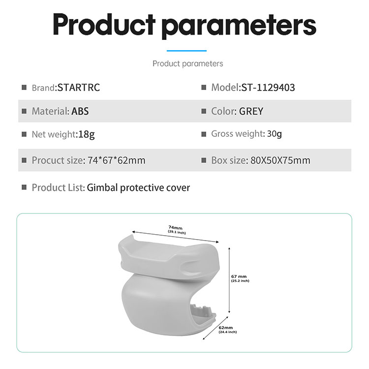 l Gimbal, camera, sensor integrated protection, dustproof, anti-scratch, prevent foreign objects collision, does not affect the drone storage, can be stored in the original bag, and most of the handbags on the market, waterproof cases and backpacks, in the process of storing and transporting at all times to protect the gimbal camera, to prolong the life of the camera, and always maintain a new state