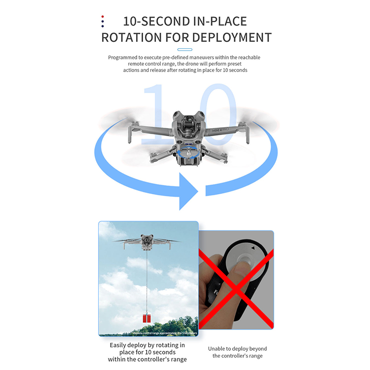 l It can realize directional release, according to the program settings to let the drone execute the preset attitude in any remote control range that can be reached, and the drone can be released after rotating in place for 10 seconds