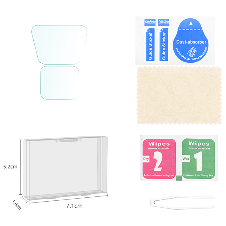 l 1x Tempered Film, 1x Alcohol Pack, 1x Cleaning Cloth, 1x Dust Removal Sticker, 1x Tweezers