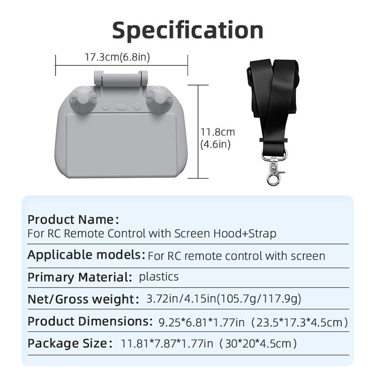 Remote Control Shade Hood with Screen + Strap Accessories for RC Remote Control with Screen
