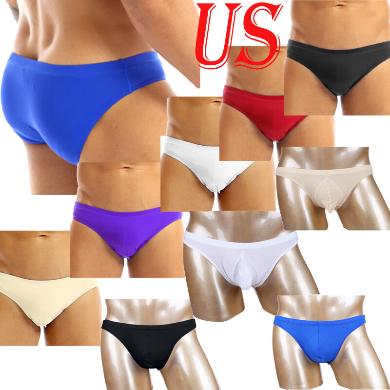 US Men Ice Silk Bikini Briefs Soft Shorts Bottoms Lingerie Underwear Sleepwear