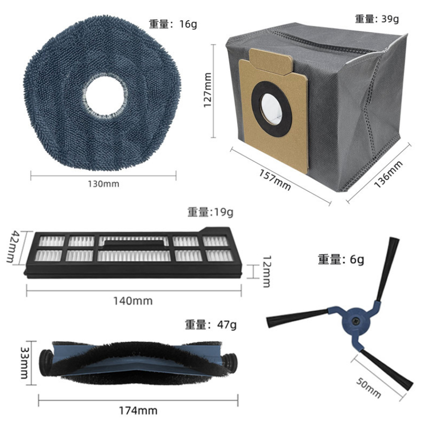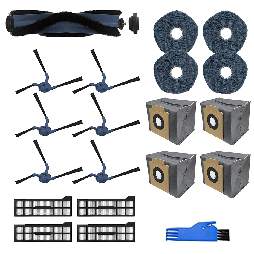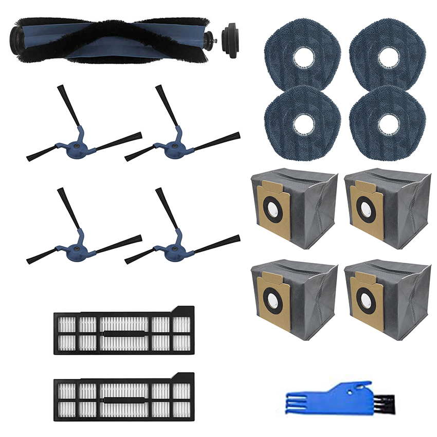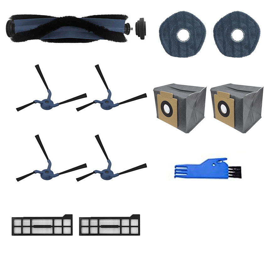 l 1x Main Brush + 4x Side Brushes + 2x Filters + 2x Mops + 2x Dust Bags + 1x Cleaning Brush