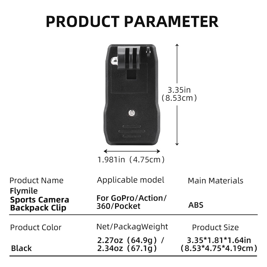 l 1x Sports Camera Backpack Clip + 1x Long Screw