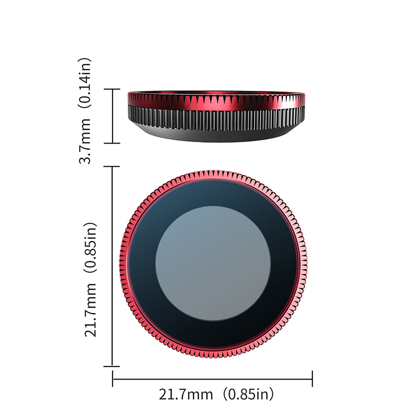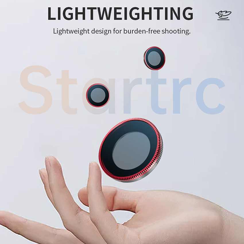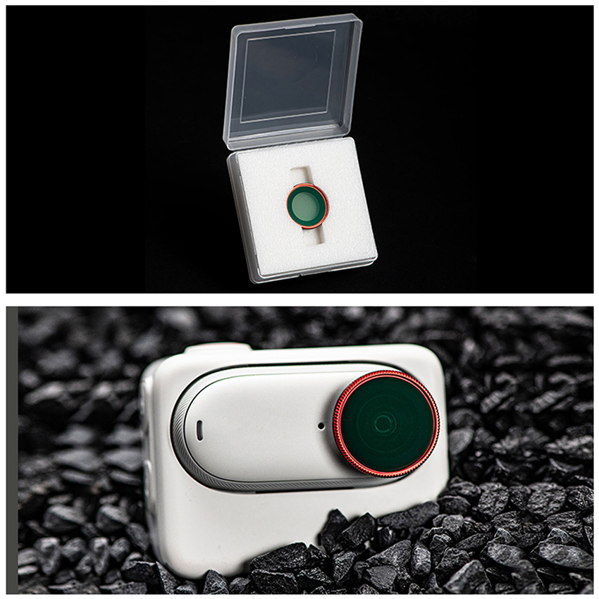 l Aircraft grade aluminum frame is laser engraved with multiple oxidized finishes to prevent light leakage or ghosting, ensuring that each filter is rigorously tested and will not add extra burden to your thumb camera or interfere with the normal shooting of GO3S, weighing only 1.8 grams
