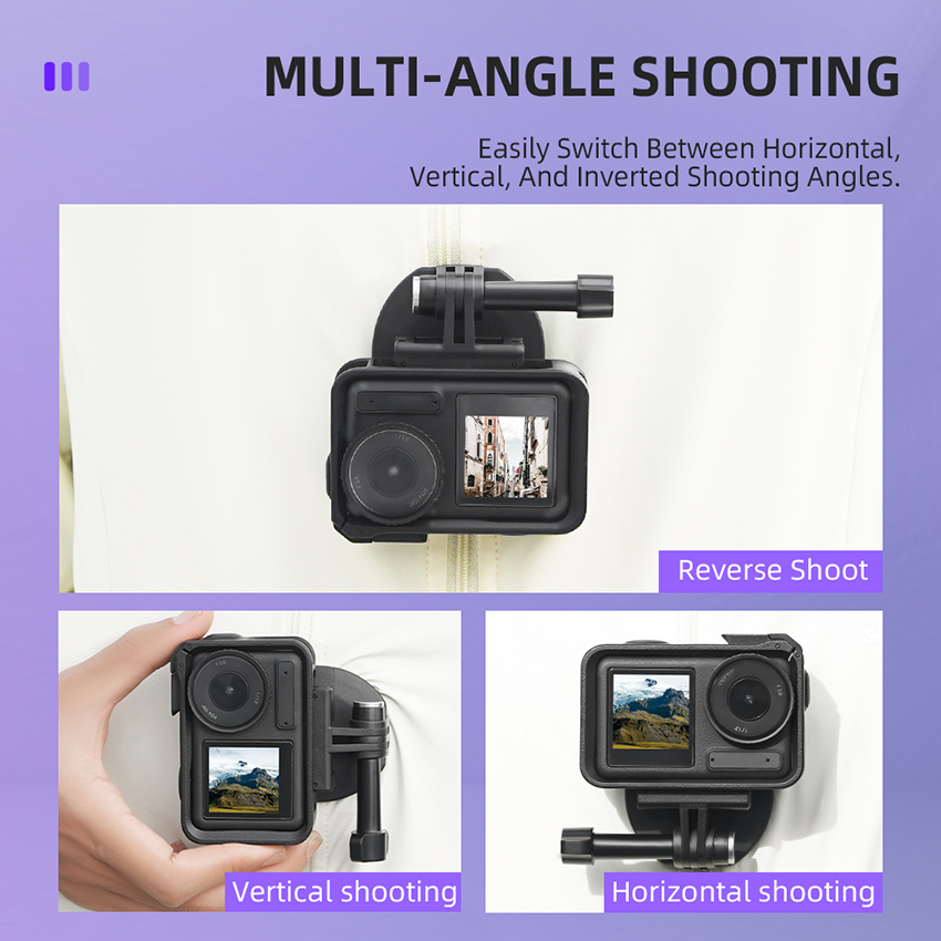 l Easily switch between horizontal, vertical, and inverted shooting angles