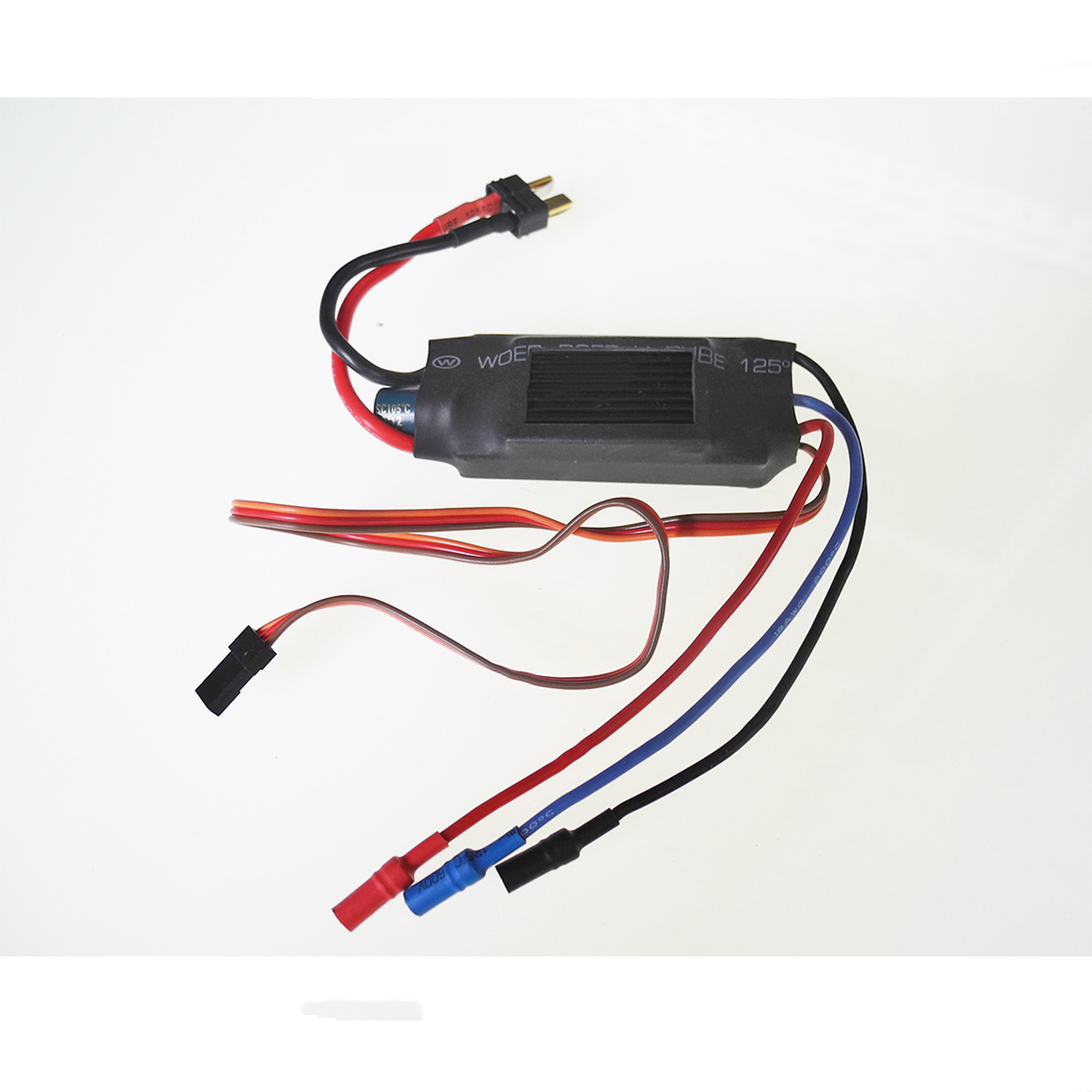 l ESC power connector is T-type plug, power cord is 14AWG silicone cord, to the motor end is 18AWG silicone cord.