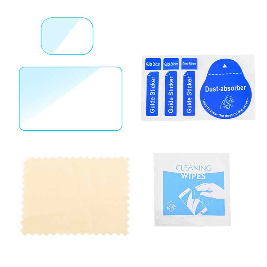 l 1x Screen Protector + 1x Lens Protector + 1x Alcohol Pack + 1x Cleaning Cloth + 1x Dusting Sticker