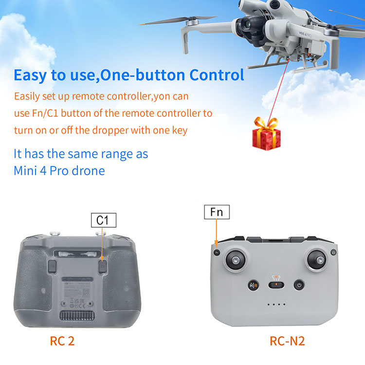 l Drone remote delivery for advertising, bait tossing, gift delivery, food delivery, wedding ring toss, etc.
