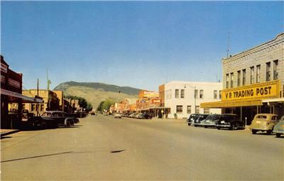 CODY, WY Street Scene "VR Trading Post" Wyoming Vintage Postcard ca 1950s