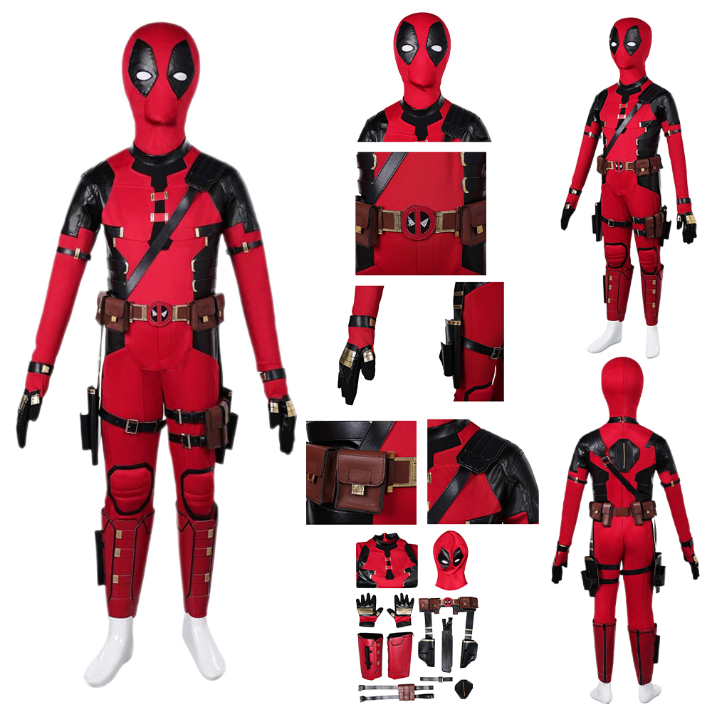 Kids Dead Pool Wade Winston Wilson Cosplay Costume Jumpsuit Halloween Boys Girls
