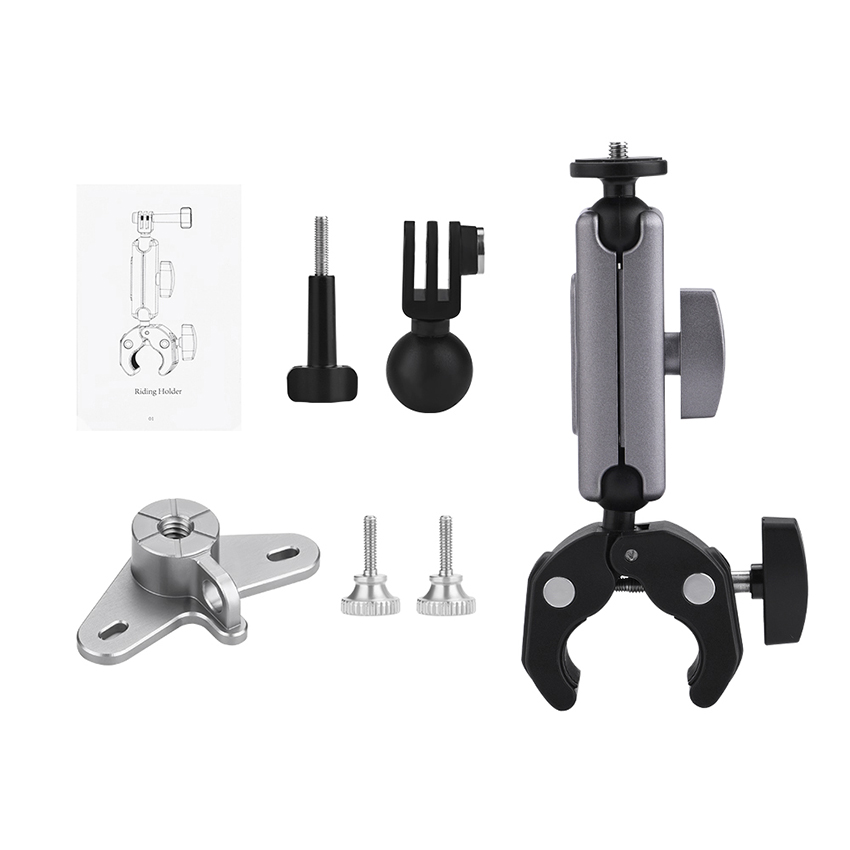 l 1x Cycling Mount + 1x 3-Jaw Adaptor + 1x 1/4 Adaptor + 1x Long Screw + 2x Hand Screws + 1x Metal Buckle + 1x Instruction Manual
