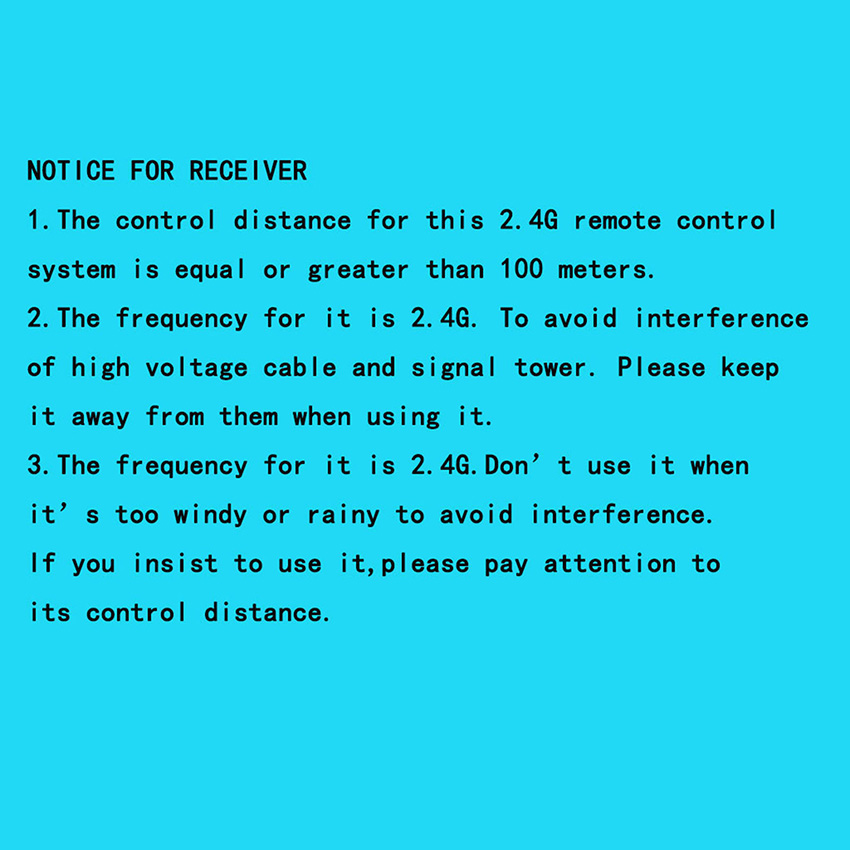 l 1x Receiver Board, 1x Remote Control, 1x Instruction Manual