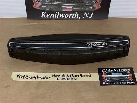 This OEM horn pad is tested and is in good working condition (see video). Color is dark brown, looks almost black. Overall very good condition. The black in the center could use a little touch up. Vinyl is in excellent condition, no nicks. Please view video (https://youtu.be/ZW8vKYz_TAU) and all the photos as they are part of the description. This was removed from a 1974 Impala, but may fit other vehicles listed in compatibility chart; please do your own research as we do not offer refunds if it does not fit your vehicle. Please look at all pics and ask any questions prior to bidding. There are plenty of pictures & we purchased the zoom, so please use it. What you see in the pictures is what you get.