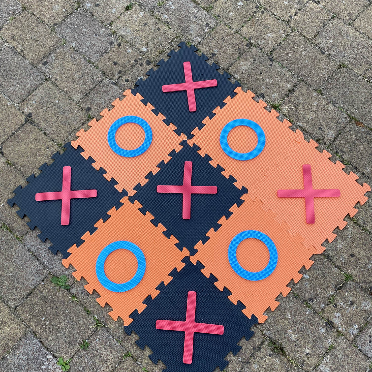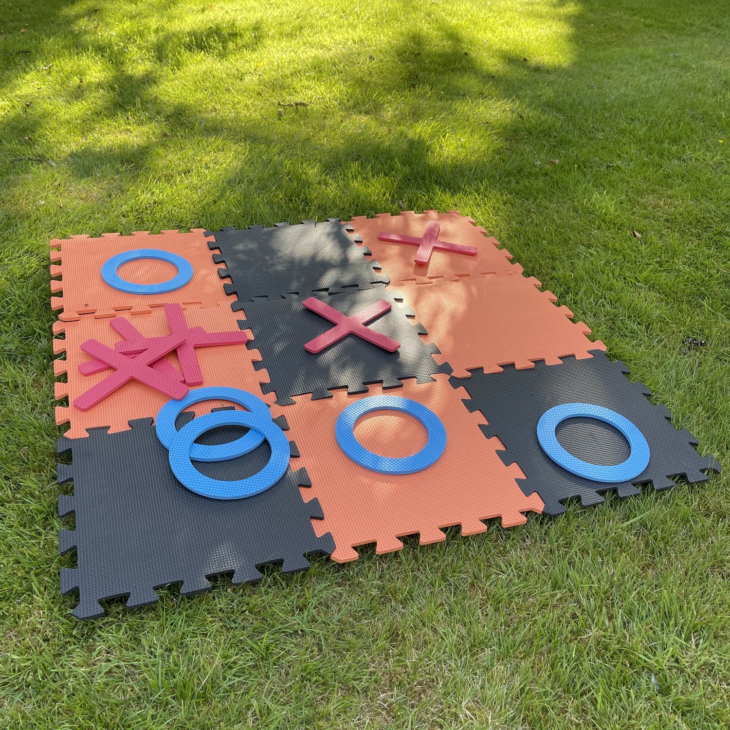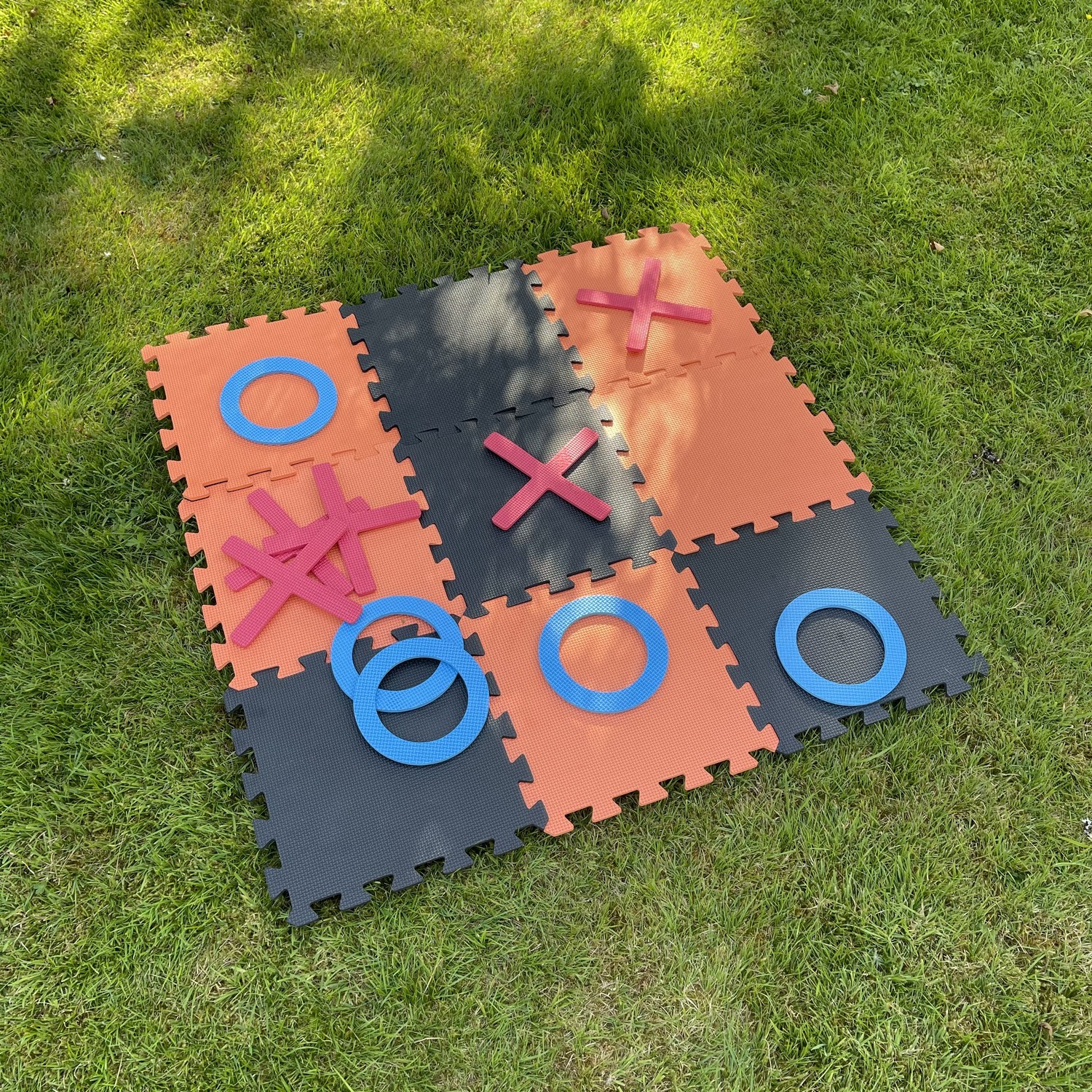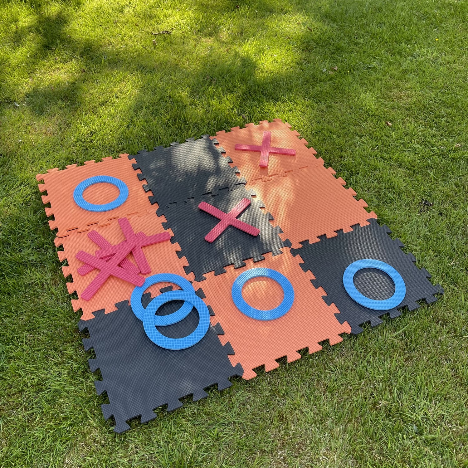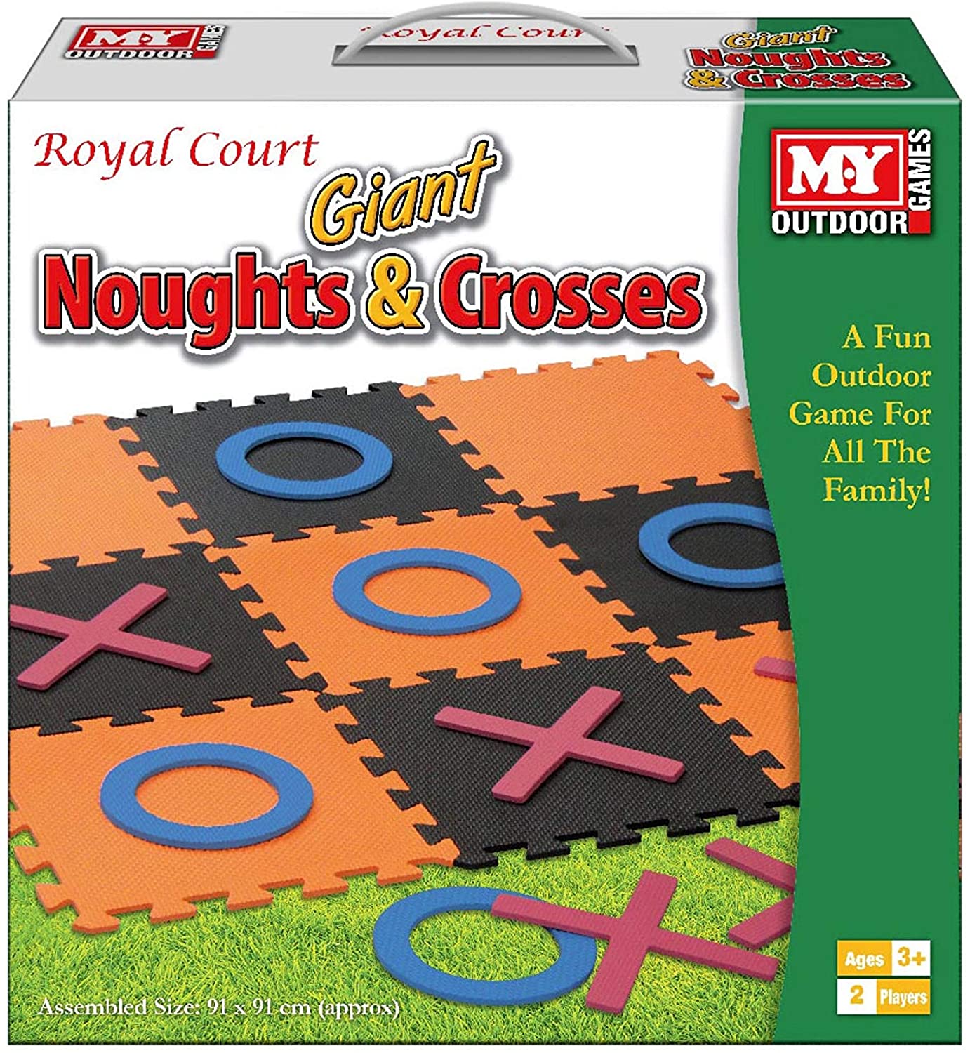 A fantastic skill test for people of all ages to enjoy. This classic game is ideal for playing in the garden or while on vacation. A game of Noughts and Crosses is a fun way to spend a few hours in the yard on a warm summer evening, and it's ideal for both adults and children. This popular outdoor game is ideal for social gatherings with friends and family, as well as events and festivities like as weddings and birthday partie. Packaged in a handy cardboard storage box with handle this giant set includes 9 pieces of interlocking foam pieces to form a 94 5cm x 94 5cm playing board and 10 playing pieces (5 noughts and 5 crosses). Warning: Choking Hazard. Small parts. Not for children under 3 years.