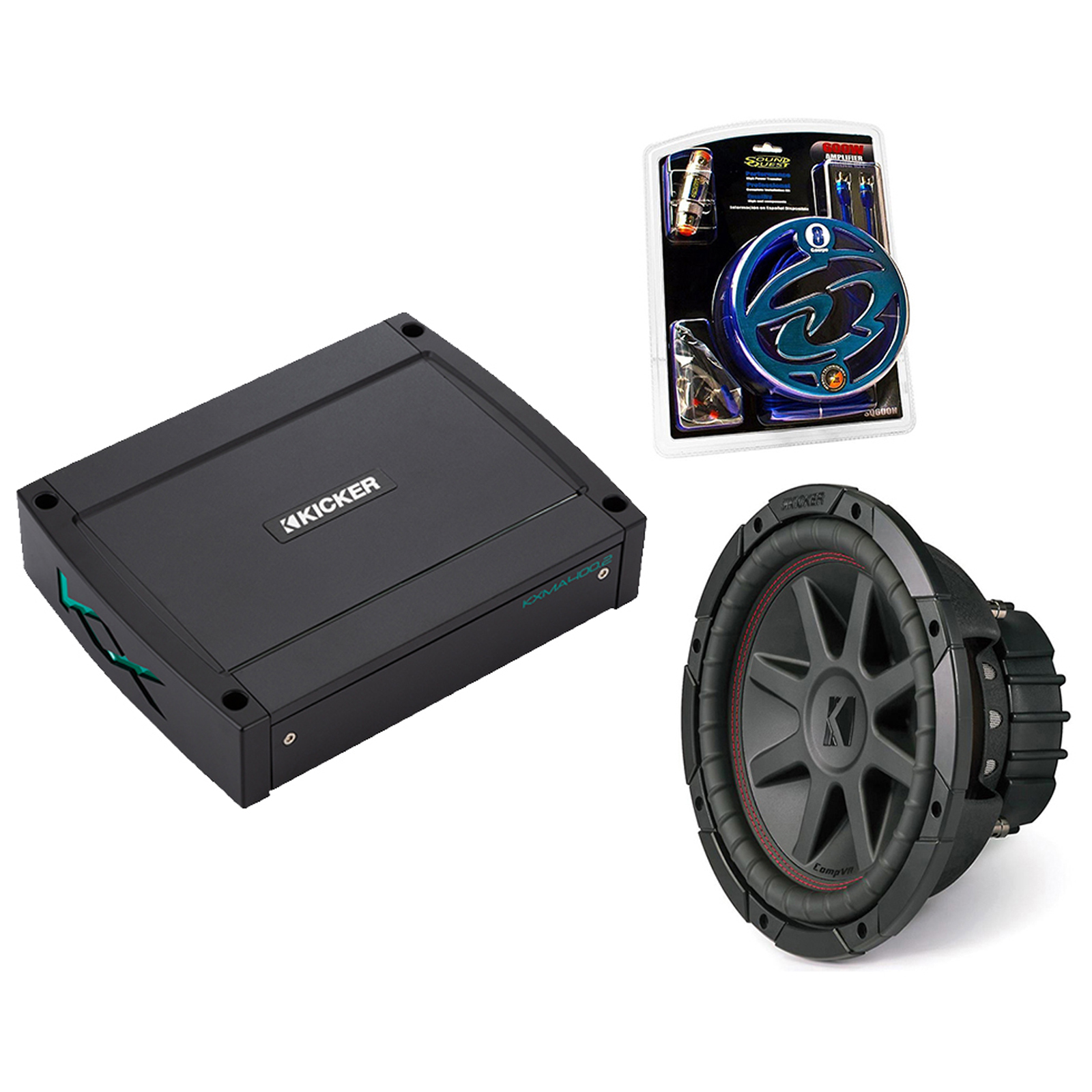 Kicker 43CVR102 CVR10 Series 400W Sub, Kicker 2x200W Class-D Amp & SQK8 Amp Kit