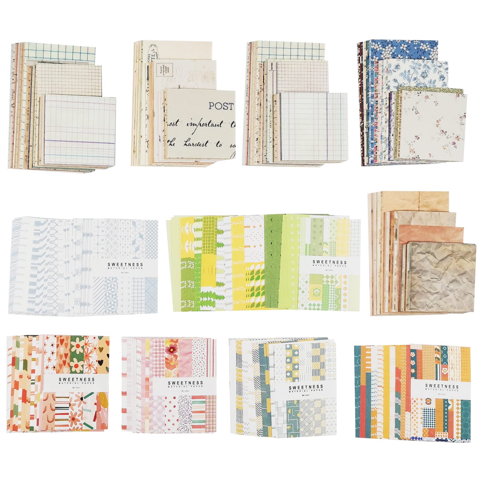 - 【Scrapbooking Paper】600 sheets of 11 different vintage scrapbooking papers. The styles include pineapple soda, strawberry coconut, orange jelly, blue fruit sago, mango milk roll, peach juice, broken flowers, flowers, traces, messages, drawings, etc. Different styles of decorative paper have different colors. Bring freshness and energy to your DIY projects.