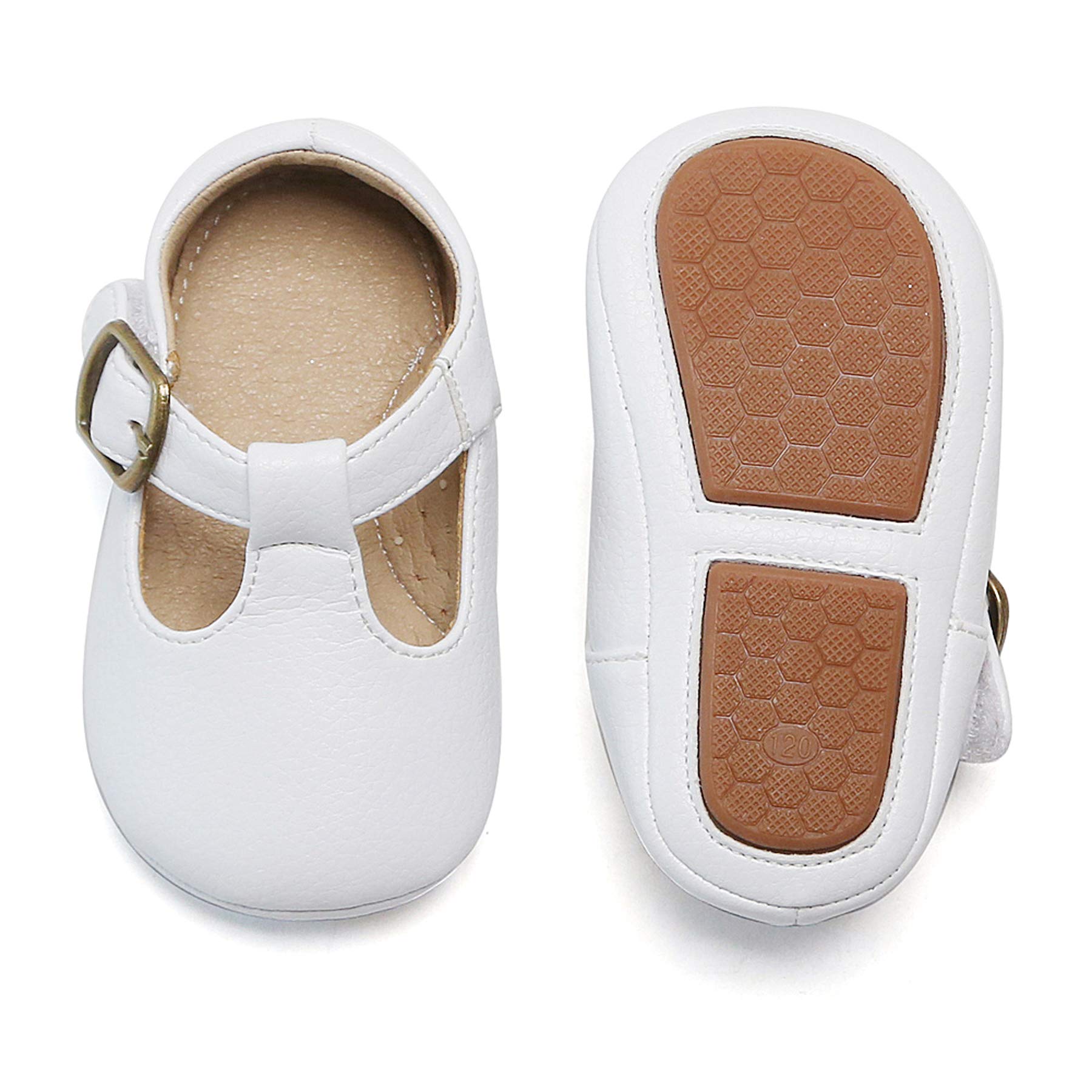 Soft Sole Leather Baby Shoes - Infant Baby Walking Shoes Moccasinss Rubber Sole Crib Shoes(White,18-24 Months Infant)