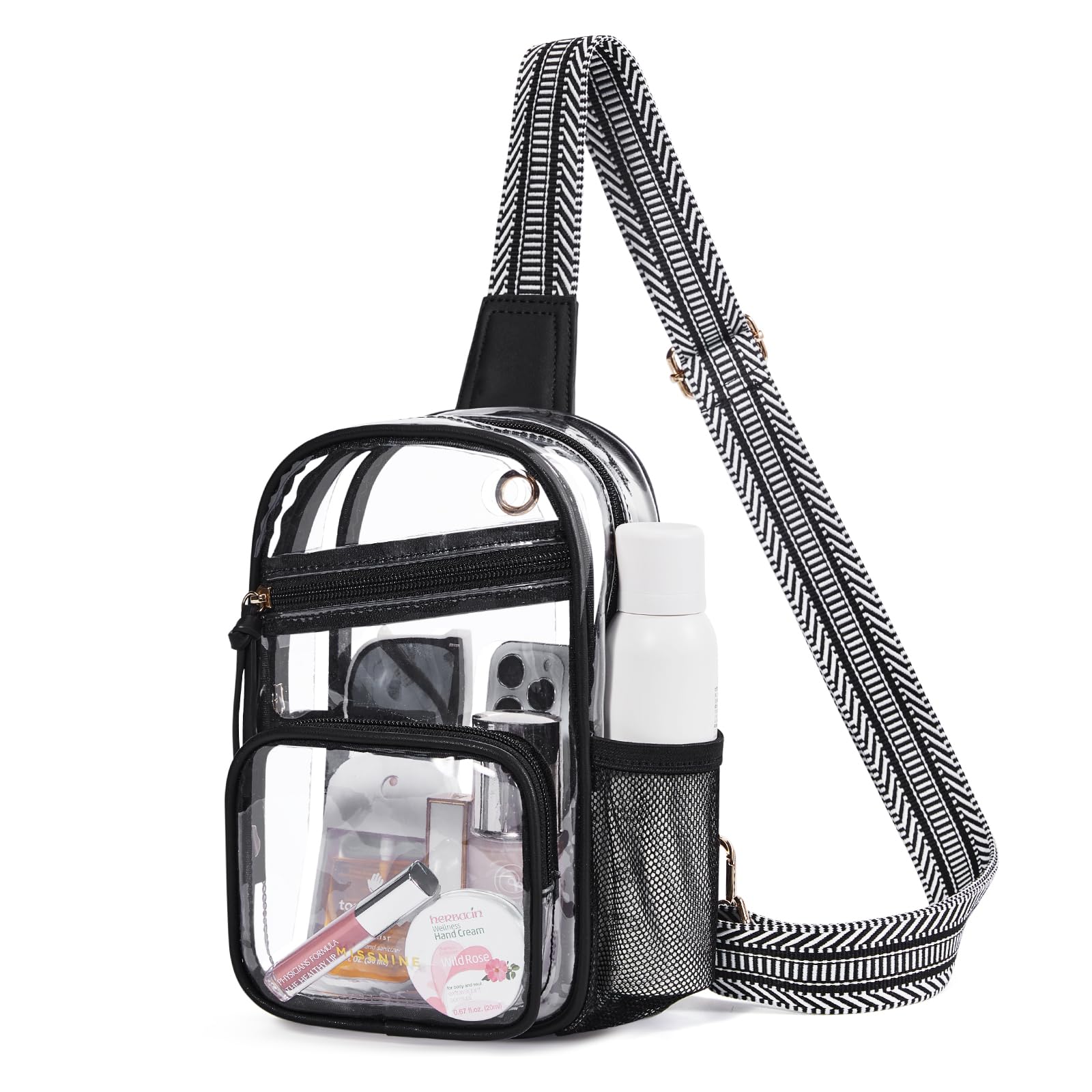 Clear Bag for Stadium Events Clear Sling Bag Fanny Pack Crossbody Purse for Sport Concert with Side Mesh Pocket