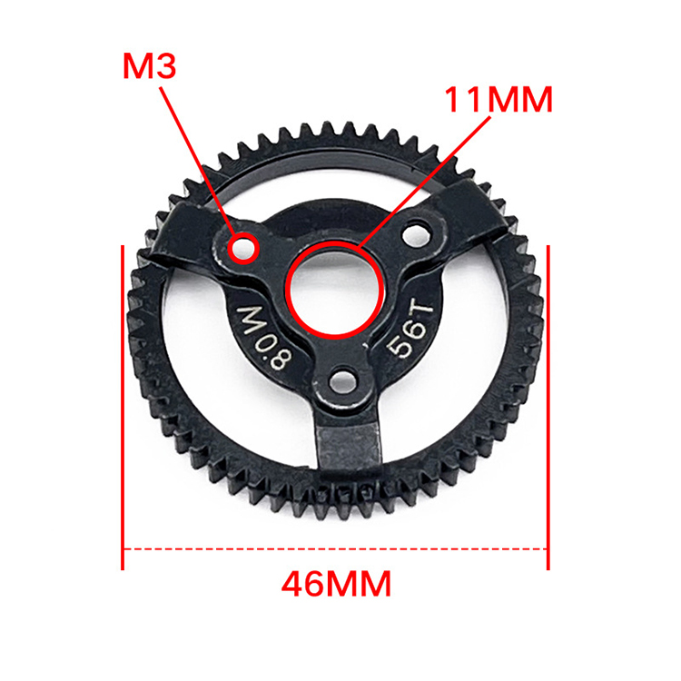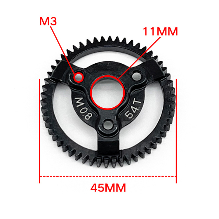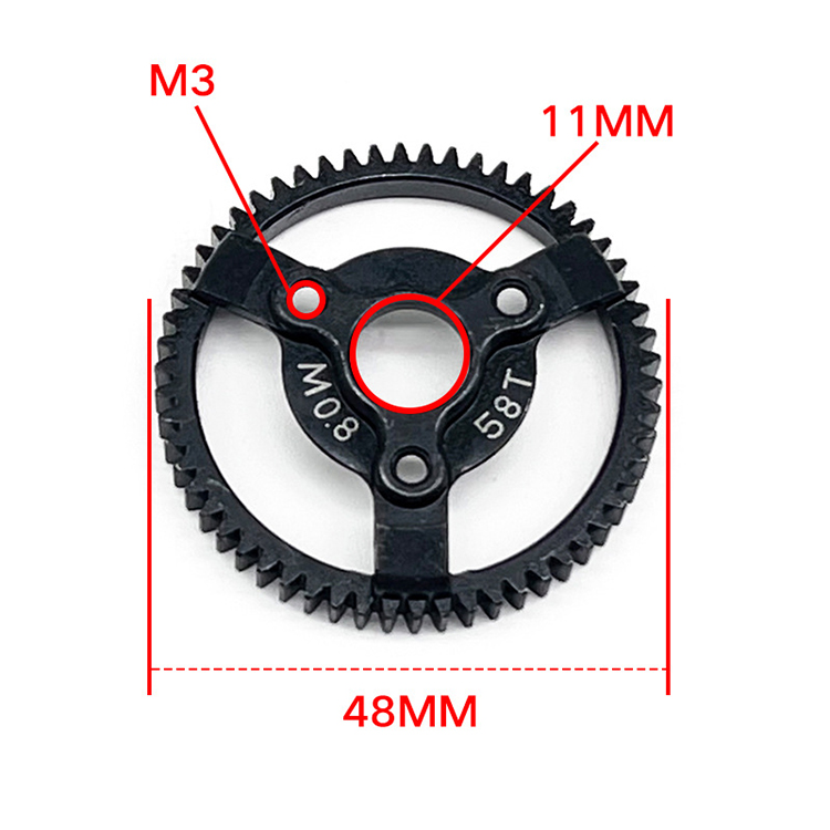 l Rugged 0.8 modulus, hardened black steel teeth, which can replaces ordinary nylon main gears