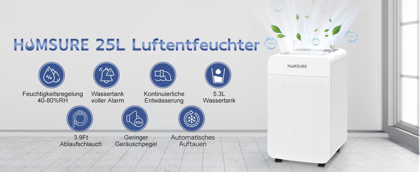 【Effiziente Entfeuchtung】HUMSURE Entfeuchter elektrisch entfernt 25L (Temperatur: 86 ° F, Luftfeuchtigkeit: 80 % RH) Feuchtigkeit pro Tag aus großen Räumen mit einer Fläche von bis zu 215m³(80m²). Dieser tragbare luftentfeuchter kann im Badezimmer, im Wohnzimmer und im raumentfeuchter verwendet werden , Schrank und Küche, um den täglichen Bedarf an Entfeuchtung zu decken. Bitte beachten Sie: Der bautrockner luftentfeuchter erreicht seine optimale Leistung bei Raumtemperaturen von 5 – 35 °C.