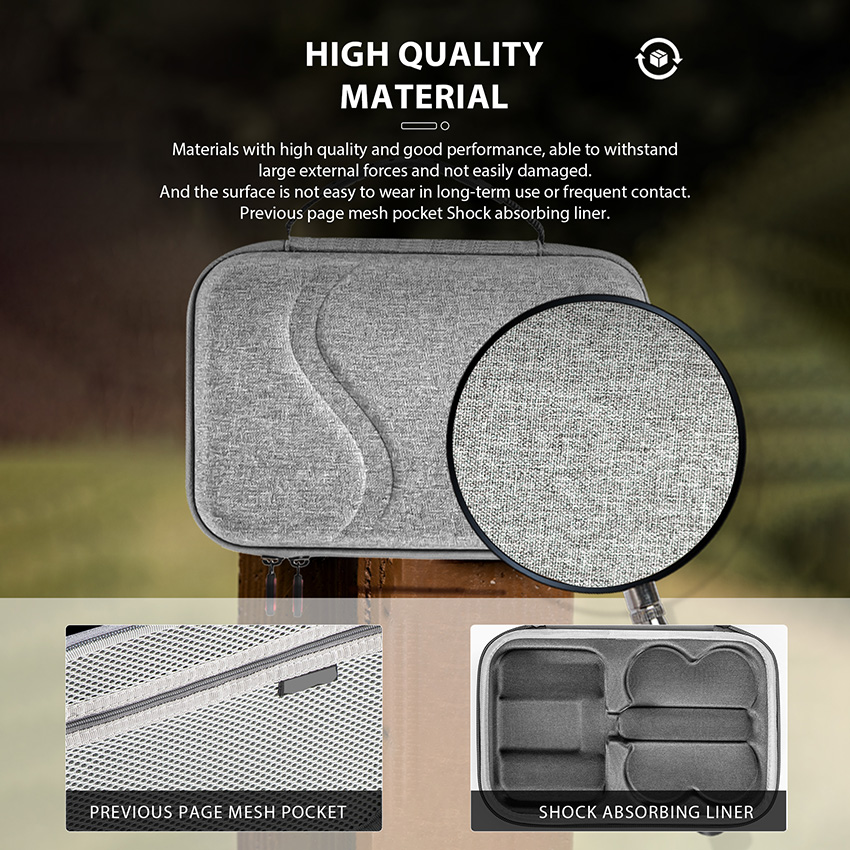 l One-piece fixed design of the inner liner. Can prevent the device from shaking during transport, to achieve the effect of shockproof buffer; internal top cover mesh pocket deepening design, can reduce the friction between the device and the top cover