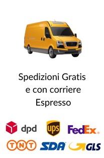 La spedizione viene effettuata entro 1-2 giorni lavorativi, dal lunedì al venerdì nelle modalità scelte al momento del pagamento (tranne se diversamente indicato nell’ inserzione). La consegna dei prodotti avverrà all'indirizzo fornito dall'acquirente nei tempi e nei modi previsti dal tipo di spedizione scelta (non si risponde di eventuali ritardi dovuti ai corrieri).