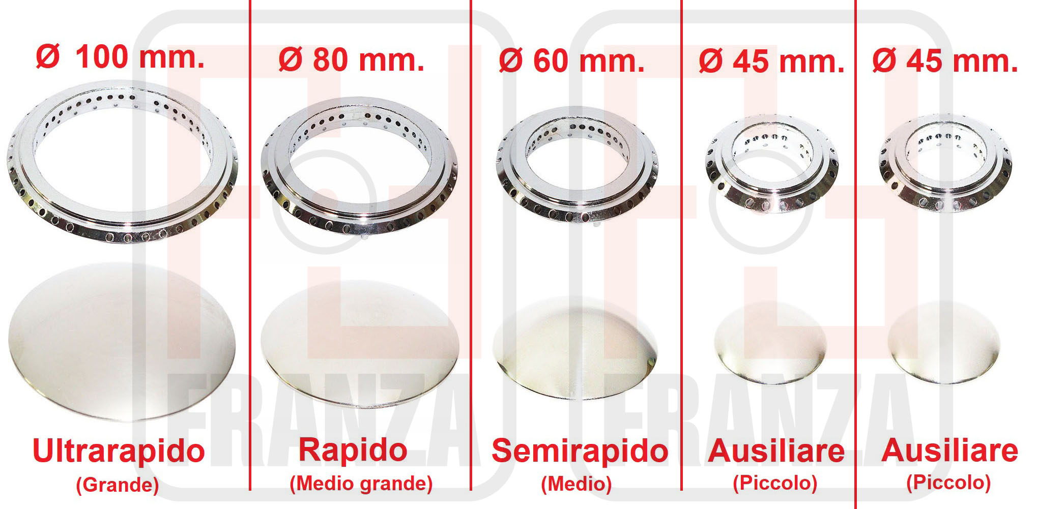 - Kit anelli spartifiamma completi di coperture in acciaio inox per cucina piano cottura 5 fuochi